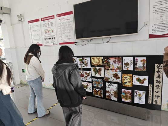 在金秋的怀抱中,11月13日,艺术学院在学生宿舍区开展了一场别开生面的树叶粘贴画展览。此次展览不仅是一次艺术实践的盛宴,更是学院宿舍“一站式”社区建设成果的一次生动展现。