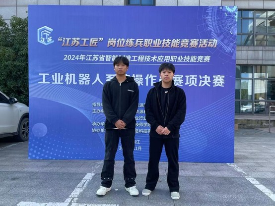 近日,“江苏工匠”岗位练兵职业技能竞赛活动——2024年江苏省智能制造工程技术应用职业技能竞赛决赛在江苏省镇江技师院顺利举办。来自江苏省各职业院校的57名选手参与竞赛。经过激烈角逐,我校智能制造学院工业机器人技术专业22机器人单班崔龙坤、张大伟同学取得了该赛项一等奖、三等奖的好成绩。