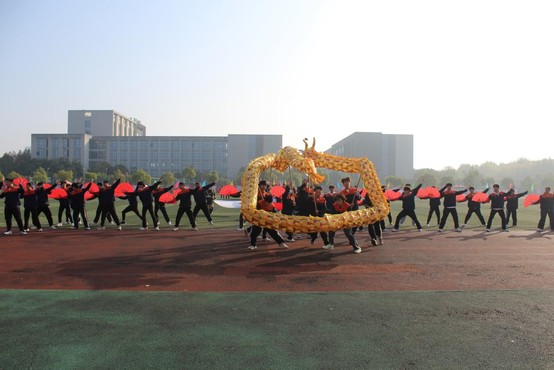 开幕式上,智能制造学院展示方阵的同学们身着中国红,手持中国扇,伴随着缭绕的雾气,以舞龙的雄浑气势震撼全场,生动诠释了智造学子的青春活力与家国情怀。由智造院80名同学组成的彩旗方阵声势浩大,开幕式的激情被瞬间点燃。