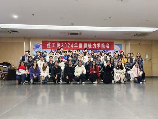 2024年12月15日晚,建工院2024年度趣味力学晚会暨工程力学学社年会在大学生活动中心319隆重举行。趣味力学晚会是校级精品社团工程力学学社的传统活动之一,由工程力学学社骨干成员集体策划、精心筹备。晚会以 “力韵华章 学梦飞扬” 为主题,力学社全体成员与众多教师齐聚一堂,共同感受力学魅力,欢庆学社年度盛会。