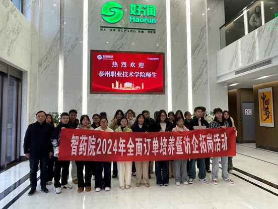 2024年12月25日上午9点,智药学院22名学生在药品安全教研室主任苏学军和宗春燕老师的带领下,乘坐学校大巴前往江苏好润生物产业集团股份有限公司(“好润集团公司”)开展全面订单培养暨访企拓岗活动。