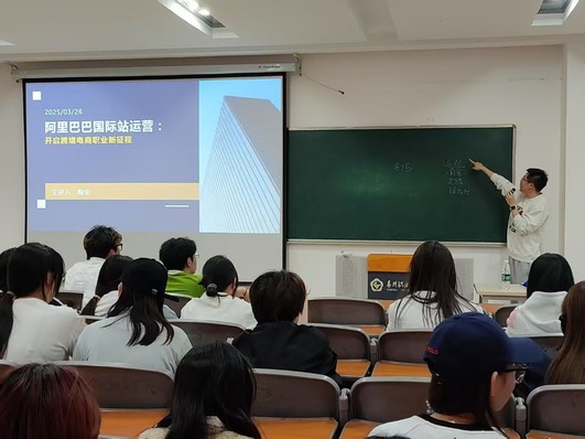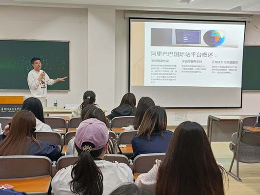3月26日下午,经管院特邀优秀校友泰州鑫启航资讯有限公司总经理陶金先生,在经管院401教室为电子商务、市场营销专业同学带来《阿里巴巴国际站运营实战》专题讲座。本次活动通过理论解析与实操演示相结合的方式,为近百名学子揭开了跨境电商运营的实战密码。