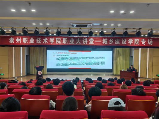 为深入贯彻落实党的二十大关于“实施就业优先战略”和“推进职普融通、产教融合、科教融汇”的重要部署,提升大学生文化素养与职业规划能力,助力学生成长成才,4月17日下午,江苏省自然资源厅二级调研员杨建明应邀莅临泰州职业技术学院,为学院师生带来了一场题为《文化素质与大学生职业规划的思考》的专题讲座。院长石泉彬、党总支副书记叶伟以及100余名师生代表现场聆听讲座,活动由院长石泉彬主持。