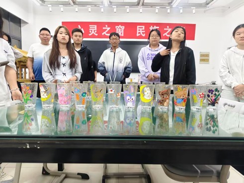 活动中,透明玻璃在大家的精心绘制下,变身成饱含心意与民族特色的艺术品。少数民族学员把本民族文化元素融入彩绘,传统图案、特色符号一一呈现,尽显民族文化魅力;心理委员们也发挥创意,为作品添上灵动笔触,让每一幅彩绘都满含温度。大家在学习玻璃彩绘技能的同时,打破隔阂,增进了不同民族同学间的情谊,现场满是欢声笑语。