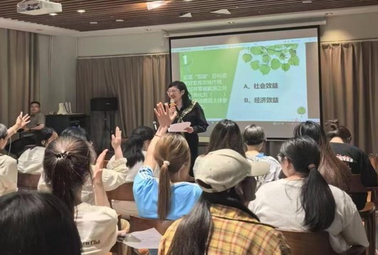 讲座现场进行趣味问答吸引学生参与,直观了解衣食住行中的碳排放逻辑。此次活动让同学们了解低碳生活的魅力,让低碳成为青年生活新时尚。