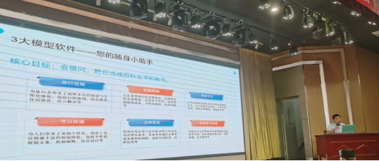 报告会上,他用通俗易懂的语言,从微信的概述开始,讲解了微信在生活中的应用,重点讲解了豆包、腾讯元宝等大模型软件的应用。现场演示了如何下载豆包软件,阐述了如何通过提问,把大模型软件当成百科全书和秘书,使之成为日常生活中的随身小助手,并手把手地指导大家进行现场操作练习。
