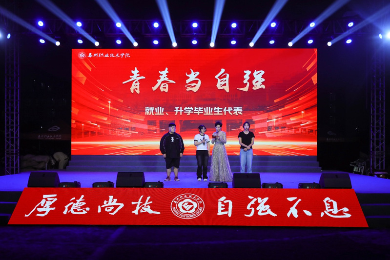 在“成才路径指引”环节,晚会再次通过“微访谈”,邀请了留泰就业的代表陈庆鹏、张莹,以及成功升学代表季仁辉、马正水,分享了他们“就业有订单、升学有培训”的成长故事。为了助力同学们成长成才,学校“以学生为中心”采取多项措施,从2025级开始,为每个班配备了2名班主任,为每个专业配备了专业学部教育长,全力托举同学实现高质量就业、高水平升学。