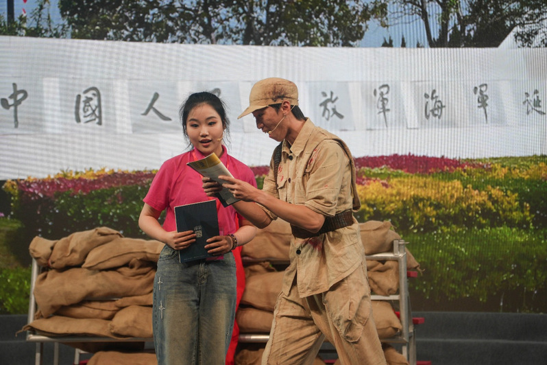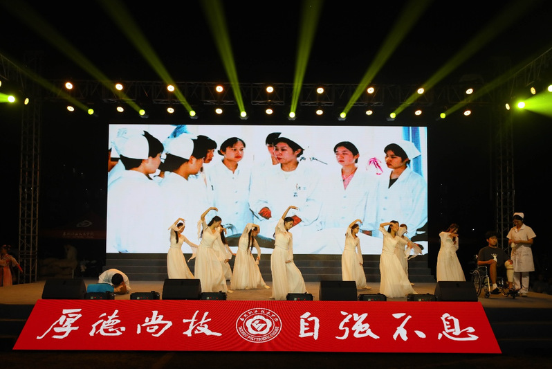 晚会巧妙融入了深刻的爱国主义与职业生涯发展教育。情景剧《你记得,我就活着》与歌伴舞《红色之恋》深情缅怀革命英烈,告诫新生珍视和平,赓续红色血脉。更令人振奋的是,从军营发来的视频问候——曾参加九三阅兵的校友张洋,以头戴蓝盔、意气风发通过天安门的形象,展现了泰职学子携笔从戎、保家卫国的风采,将现场气氛推向高潮。