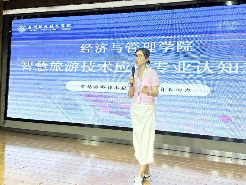 9月26日晚,经济与管理学院智慧旅游技术应用专业认知教育在学校大学生活动中心105室进行。经管院2025级智慧旅游技术应用专业教育长田力老师首先热情欢迎新同学们的到来,并给同学们提出了三个问题,启发同学们从自身出发主动思考。同时,田力老师还向同学们介绍了旅游产业的发展背景、专业的培养目标、课程体系、毕业标准、学习建议,以及今后的就业选择。在场同学全神贯注,不时有人拿起手机拍下PPT上的关键内容。