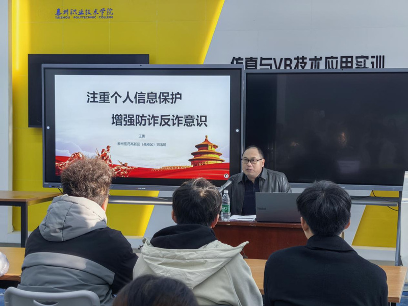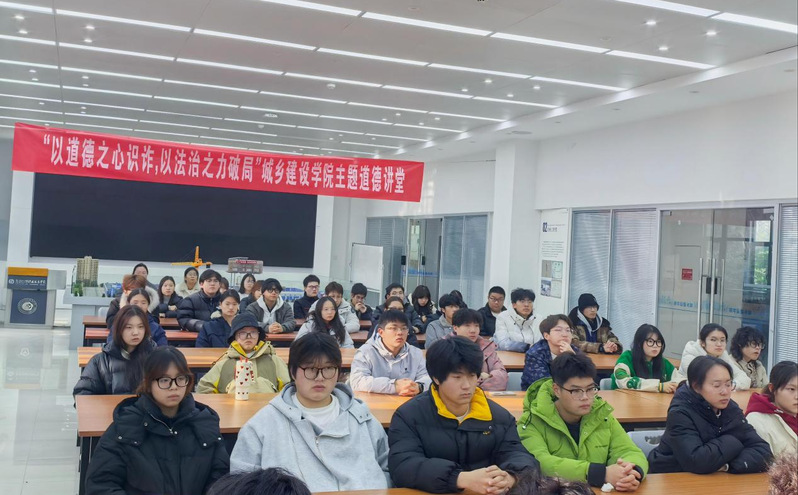 为增强学生个人信息保护意识,构建坚实的防诈反诈安全屏障,引导学生践行诚信道德规范、维护社会公共秩序,12月17日下午,城乡建设学院举办了主题为“以道德之心识诈,以法治之力破局”的道德讲堂活动,邀请泰州医药高新区(高港区)司法局普法和基层治理处处长王勇作主讲嘉宾,为全院学生带来专业且实用的法治宣讲。
