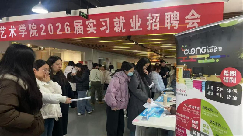 同期举办的艺术学院2026届毕业生专场招聘会,是学院首次将招聘会与毕业设计展演融合开展的创新举措,同学们以实践成果直接向用人单位推介自己,实现了“成果展示即求职推介”的双赢,这也是学院持续开展提升“双核竞争力”的有力体现。本次招聘会共吸引40余家用人单位参与,提供就业岗位326个,其中泰州市内企业38家、提供岗位近300个,占比超90%,岗位类型与学院专业设置高度契合,现场近90名毕业生与用人单位达成初步实习就业意向,意向达成率超35%。