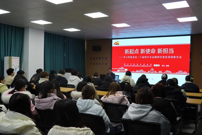 为引导青年学子深入学习贯彻党的二十届四中全会精神,筑牢理想信念之基,12月17日,智数院在107会议室举办专题讲座。本次讲座特邀马克思主义学院书记姚春林教授主讲,学院党总支副书记蔡俊璐主持,学工办主任李少欣、学院新入团团员及各班级团支书聆听讲座。