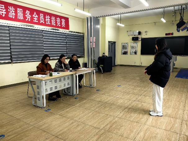 比赛前期,所有选手对讲解景点进行了抽签确定。比赛现场,学生依次走上赛场,根据比赛流程进行了景点讲解和英语问题的回答,旅游教研室季金奎、田力、张勤三位老师担任比赛评委。