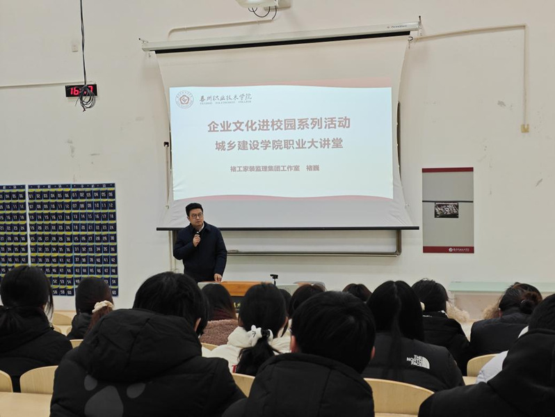为进一步深化校企合作,推动产教融合,提升学生的职业认知与行业素养,近日,城乡建设学院就业办组织开展“企业文化进校园”系列活动之职业大讲堂。本期讲堂特邀褚工家装监理集团工作室总经理禇巍先生担任主讲嘉宾,学院师生代表百余人参与活动。