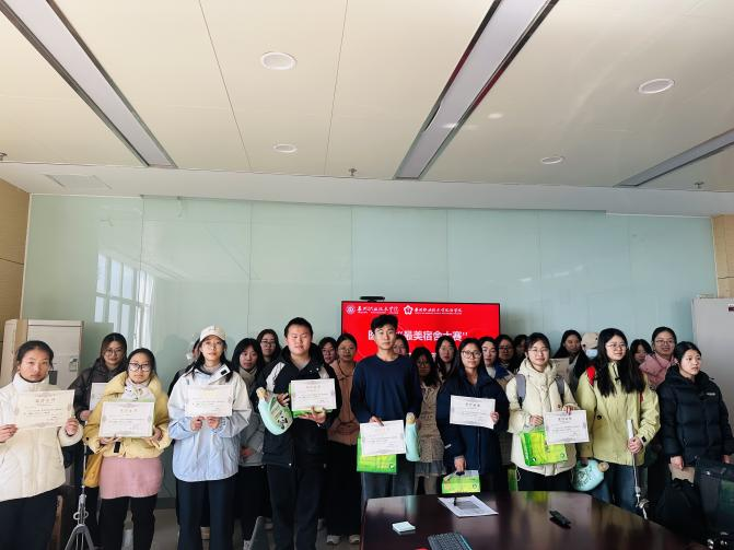 学院“最美宿舍大赛”颁奖仪式如期举行,获奖的宿舍长们手捧证书,收获满满喜悦。实用的奖品、沉甸甸的荣誉,是对他们用心整理宿舍的最好回馈。
