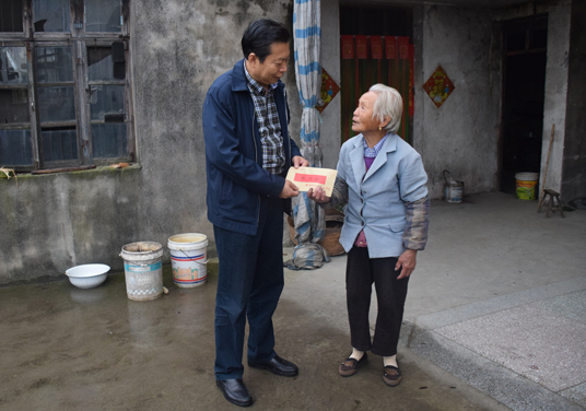 10月16日上午,在党的十九大召开前夕,第四个“全国扶贫日”来临之际,院党委书记许书平一行来到学院与市粮食局共同挂钩帮扶的经济薄弱村泰兴市元竹镇潘元村走访慰问困难群众,为20户困难群众送去慰问金共计1万元。副院长钟文乐,院工会副主席秦鉴,院党政办副主任冯红雨等陪同慰问。