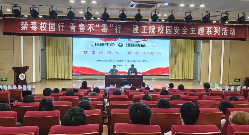为贯彻落实《禁毒法》精神,积极倡导“健康人生、绿色无毒”理念,切实加大禁毒宣传力度,提升高校师生对毒品危害的认识以及对毒品种类的辨别力,2023年4月19日下午,建筑工程学院以“4.15”全民国家安全教育日为契机,邀请江苏省女子强制隔离戒毒所、泰州医药高新区(高港区)司法局、禁毒大队、公安分局派出所联合开展了“禁毒校园行 青春不“毒”行”——校园安全主题系列活动。活动由学院党总支副书记叶伟主持,我院近200名师生代表参加。