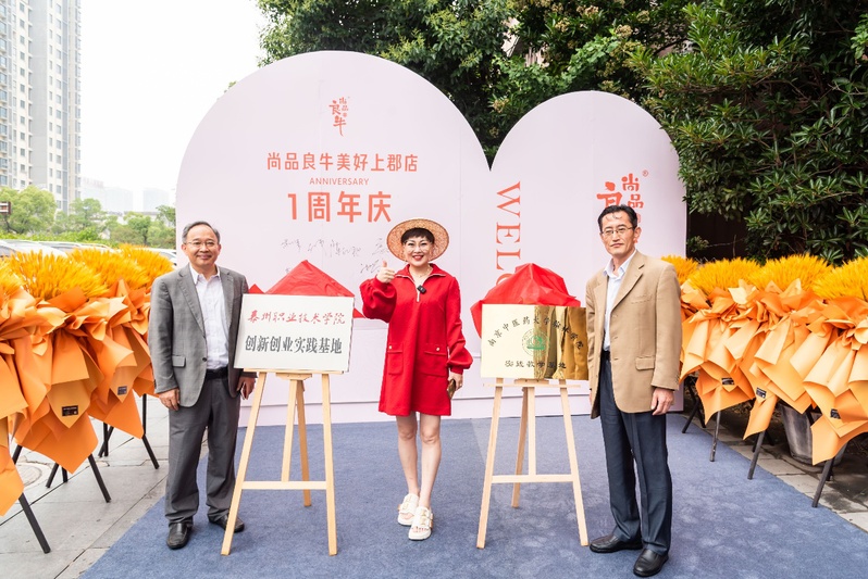 泰州职业技术学院副校长陈红秋带队,经管院书记黄明锋、院长韩翔一行3人到尚品良牛泰州美好上郡店开展校企交流活动。青岛尚品良牛食品有限公司总经理卢全宁参加创新创业实践基地签约揭牌仪式。