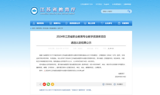近日,江苏省教育厅发布了《2024年江苏省职业教育专业教学资源库项目遴选认定结果的通知》,我院建筑工程技术专业作为第一主持单位获批,产品(环境)艺术设计作为第二主持单位获批。