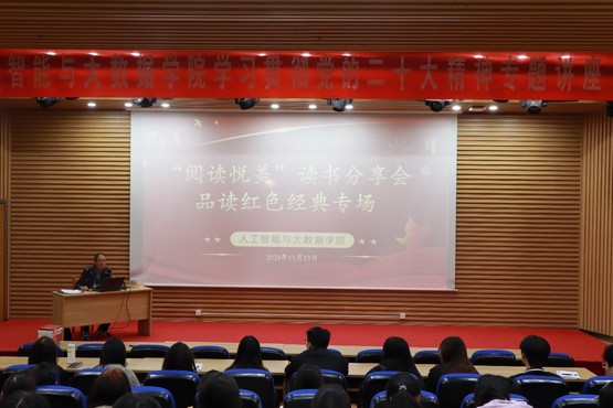 2024年11月13日,一场别开生面的红色书籍分享会在图书馆报告厅热烈开展,本次活动是智数院“阅读悦美”读书分享及学风建设主题活动的内容之一。本次活动特邀我院关工委副主任胡利胜老师,众多读书爱好者、团员同学、青年党员教师以及我院第51期入党积极分子踊跃参加,共同在红色经典的世界里追寻先辈足迹,汲取奋进力量。