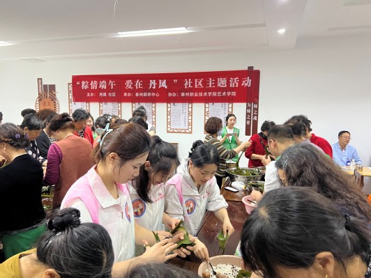 端午粽飘香,志愿暖人心。为弘扬中华优秀传统文化,5月23日上午9点,泰州职业技术学院艺术学院满天星志愿服务“幸福朝夕”项目团队和泰州颐养中心工作人员前往海陵区丹凤社区,联合开展了“粽情端午,爱在丹凤”志愿服务活动,参加本次活动的均为社区退休人员。