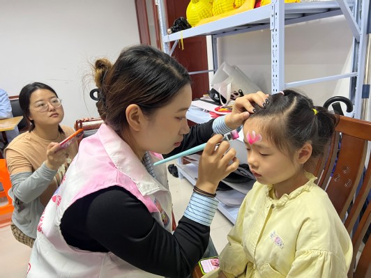 现场,还有志愿者为跟随爷爷奶奶前来的孩子们精心准备的人脸彩绘,俏皮可爱的“粽子小人”,灵动逼真的龙舟,色彩绚丽的五彩祥云,在孩子的脸上栩栩如生地呈现,一张张充满稚气的小脸上便绽放出别样的端午风情。