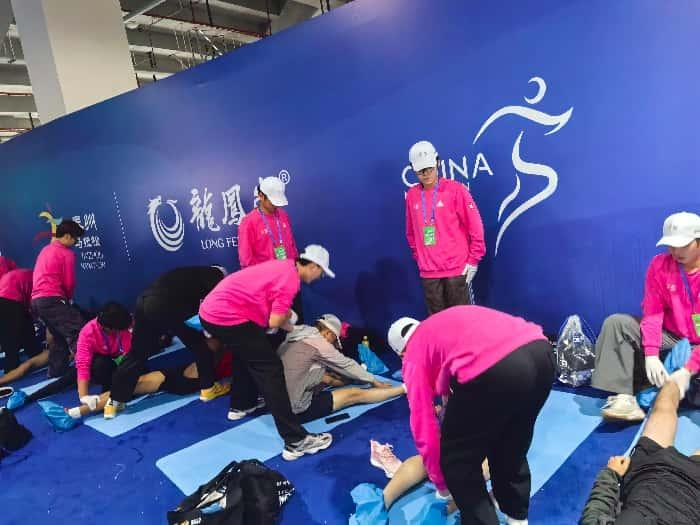 为保障服务顺利开展,志愿者们于比赛当日凌晨5点整装集结,身着统一的志愿者服装,前往泰州市体育馆服务点。随着首批选手陆续抵达终点,志愿者们迅速投入工作。他们分工有序、配合默契,为马拉松选手进行赛后放松。