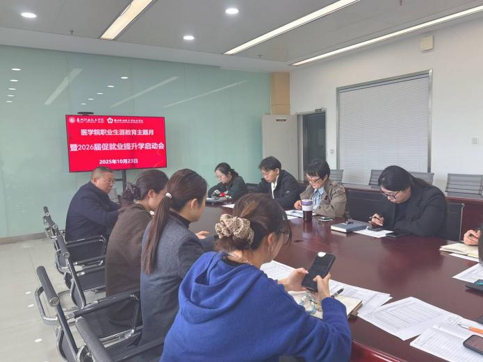 为深入贯彻落实国家就业优先政策,破解医药类毕业生就业难题,切实提升医学院就业质量与就业率,10月23日在医学楼703召开2026届毕业生促就业、提升学启动会。医学院党总支副书记徐昌成、就业办主任陈鲁、各专业班主任及辅导员共同参加会议。