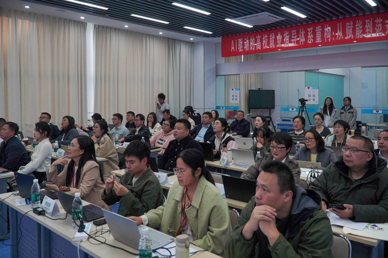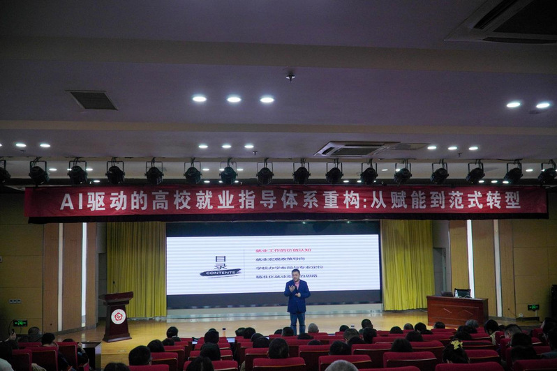 我校于10月26日成功举办了“AI驱动的高校就业指导体系重构”专题培训。本次培训是学校深入贯彻落实“双核攻坚铸品牌,破立并举赢未来”战略、全力提升就业指导工作智能化水平的一项关键举措。学校就业指导中心、校企合作中心、教务处、学工处、团委等部门负责人,二级学院党政负责人、就业辅导员、班主任代表等一百余名教职工积极参与了此次培训。