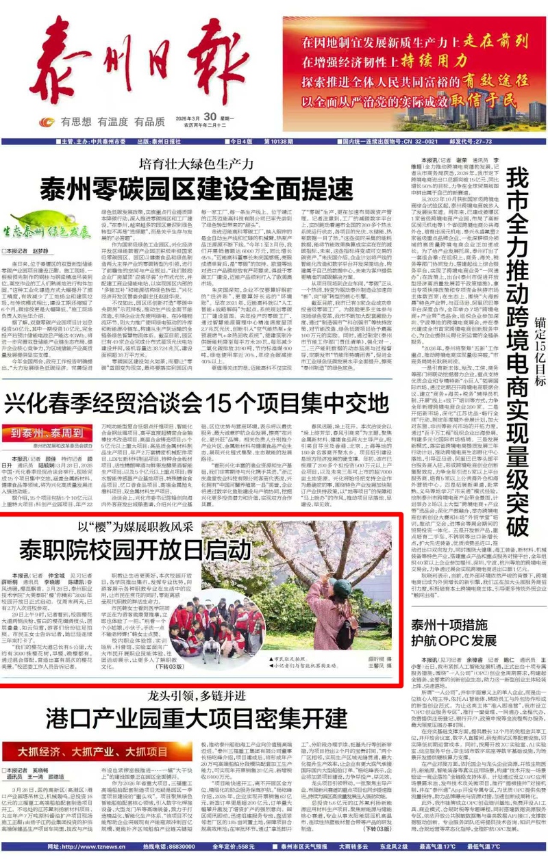 以“樱”为媒展职教风采 泰职院校园开放日启动